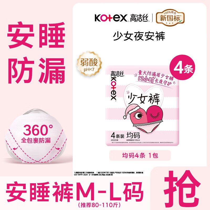 高洁丝 卫生巾夜安裤安睡裤安心裤型M-L码 4条,部分砸落5奍,1.9