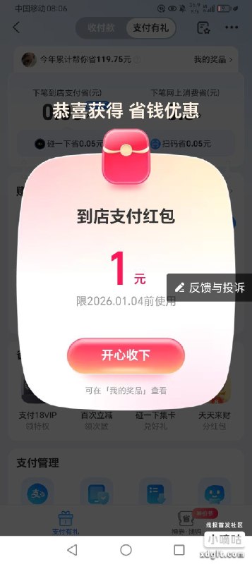 🚦 支付宝碰一下下单完成任务,记得点抢一下红包在下单,领取1块