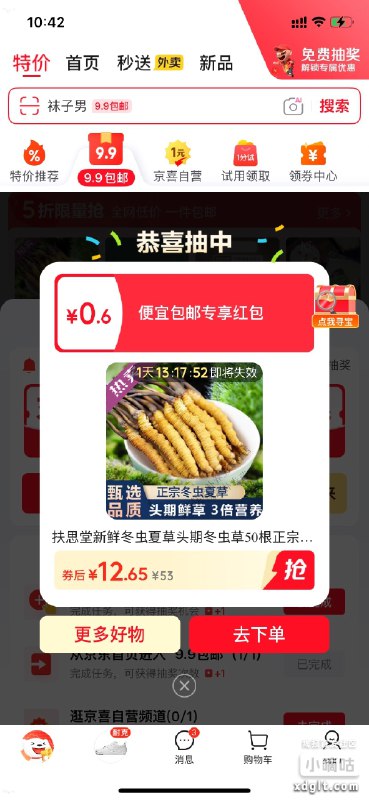 首页,9.9包邮,天天抽好运。就是领五折券那页面