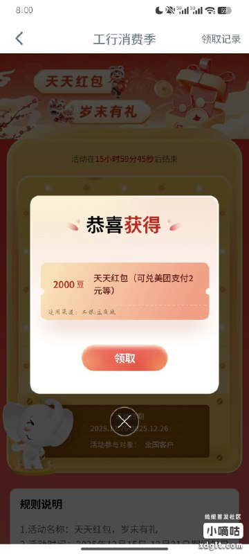 🚦 工行消费季 2000豆 二中一