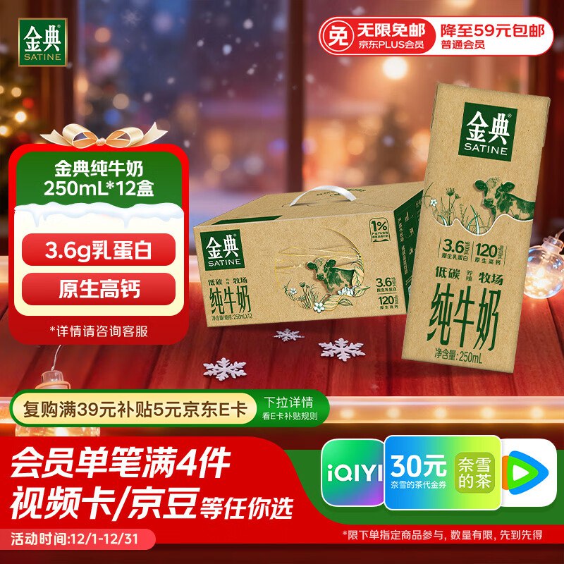 伊利金典纯牛奶250ml×12盒