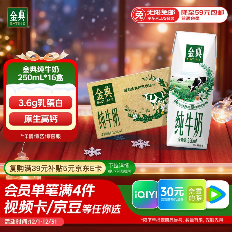 伊利金典纯牛奶整箱