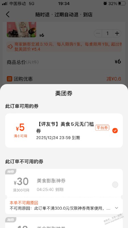 那天的大众点评5元券记得用