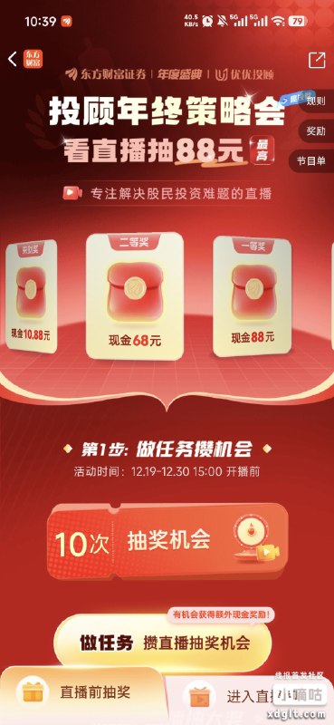 东方财富证券新活动,做任务攒抽奖机会,要等最后开播抽